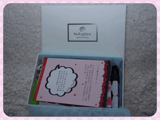 打開盒子後,第一個會看到的是包裝紙(被毆飛....),主要不是包裝紙,而是ButyuBox小卡,一面show上三月份的主題,另一面show這收到的產品資訊。