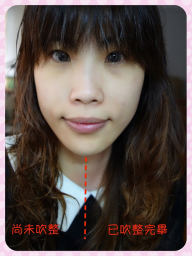 吹整完畢整體的感覺~~對我來說這款產品很方便,雖然味道有點太香...>"<
