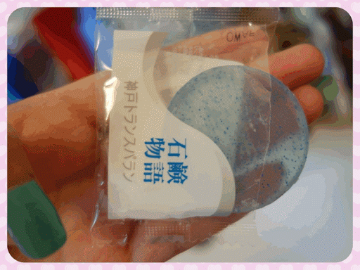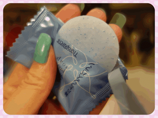 取出後,可以看到美白潔顏皂上還有藍色的顆粒點點^^