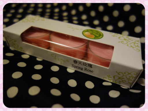 香味是春天玫瑰~產品包裝上還有貼上"100%"天然標章,這款香氛蠟燭是用大豆取代一般石蠟所製成的蠟燭,就連燭蕊都是選用無毒無鉛燭蕊,