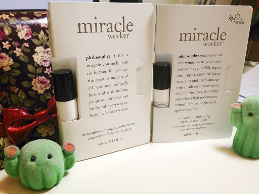 再來是很適合熟齡肌使用的「PHILOSOPHY 奇蹟再現極緻眼霜」、「PHILOSOPHY 奇蹟再現抗老精華液」