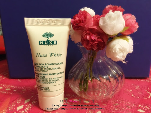 接著 Nuxe 花粹極緻美白保濕乳,味道真的好聞到不用我多說,就連不愛塗抹東西的妹妹都覺得這東西是好物,塗在肌膚上不只能夠同時給予肌膚保濕跟美白,還能讓緊繃的情緒達到放鬆感,我本身喜歡在晚上睡前使用,不用花太多的時間就能夠將Nuxe 花粹極緻美白保濕乳推勻。