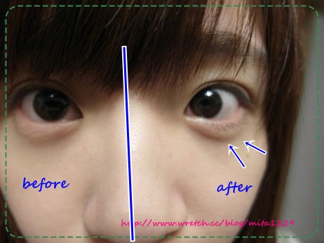 看我的下睫毛!!! 左邊沒使用的 是根本沒下睫毛吧??哈哈哈