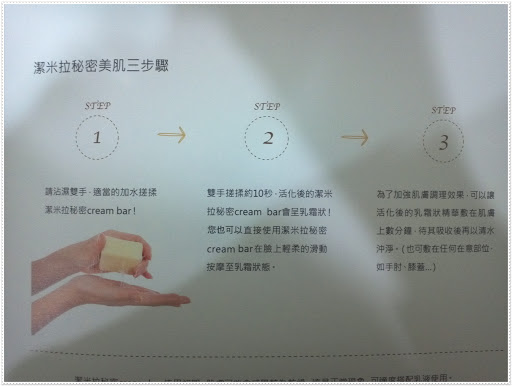 STEP1.請沾濕雙手,適當的加水搓揉潔米拉秘密cream bar!