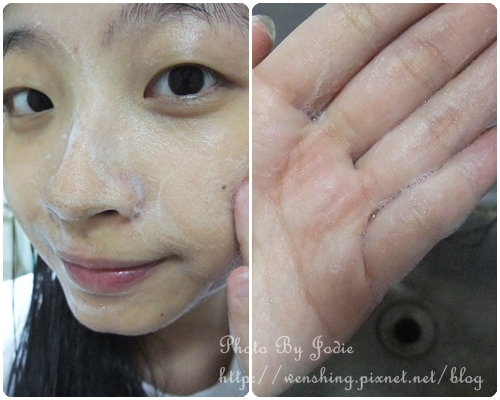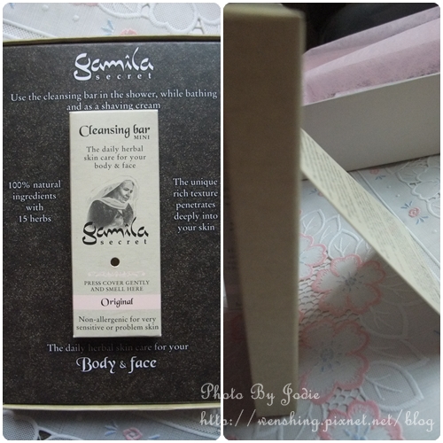 上面是寫說所有肌膚適合,溫和不刺激不引起過敏,搓揉活化潔米拉秘密,並將活化的後的乳霜輕輕按摩在肌膚上讓肌膚吸收,之後靜待15秒以上就可以用清水沖淨