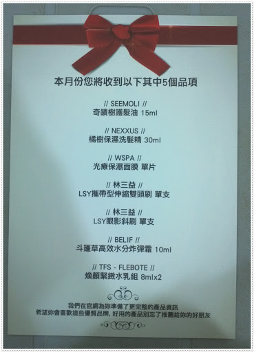 1月體驗盒將會有以下其中5個品項