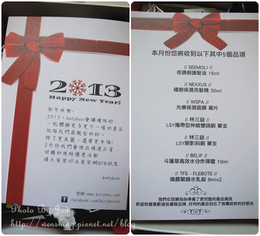 哎呀,都要二月了我才來分享這篇會不會拖有點久?不過butybox每期都讓人很滿意說,尤其是還會先公布沒煩惱呀!這次有兩組產品是隨機出貨,所以應該會有四種組合吧...我拿到的組合是超滿意的啊,愛慘了