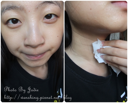 面膜紙本身也還是濕潤的,就拿來擦擦脖子跟手腳啦